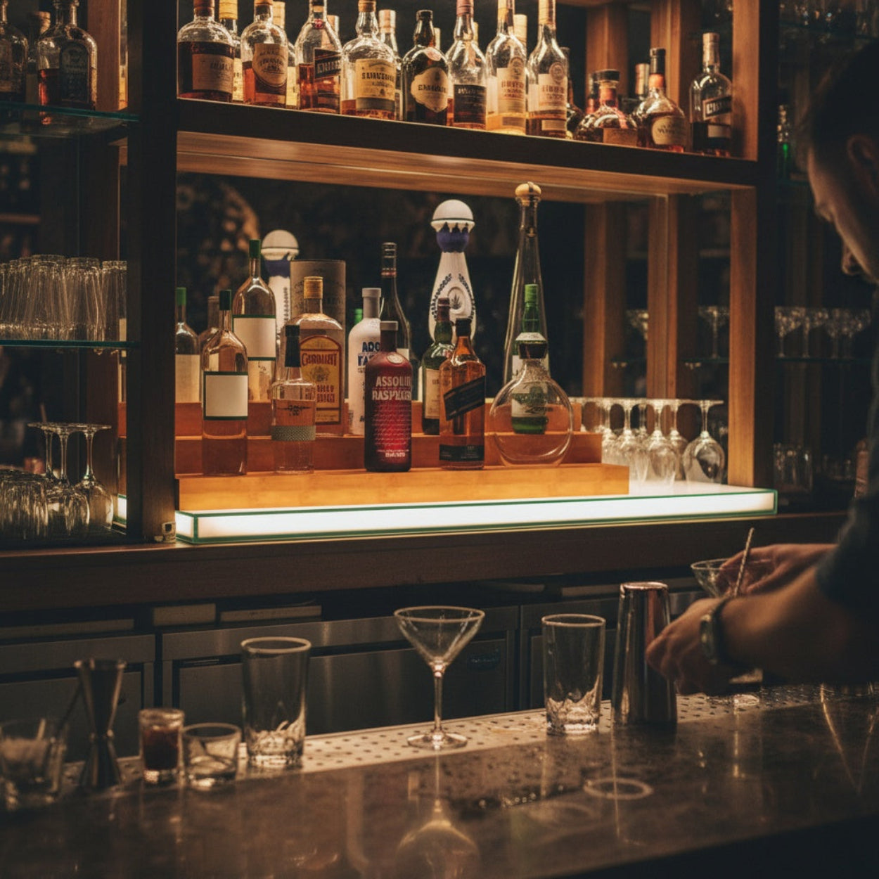 Three Tier Liquor Bottle Display Shelf & Bar Riser for Bars, Restaurants, and Man Cave 36"