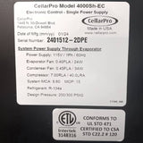 CellarPro 4000Sh-EC Cooling Unit (P/N 7401). NOW WITH ENERGY-EFFICIENT EC FANS! CellarPro engineered the 4000Sh-EC cooling system to provide maximum cooling power and adjustable humidity control for cellars up to 1,000 cubic feet. Split refrigeration systems separate the evaporator from the condensing unit, allowing the noise and heat from the condensing unit to be located away from interior living areas. Configurable for internal or external installations, the 4000Sh-EC includes a variable-speed fan on the evaporator with a low setting for quieter operation and a high setting for maximum power. This unit is the same as the 4000S, except that the evaporator is horizontal instead of vertical.