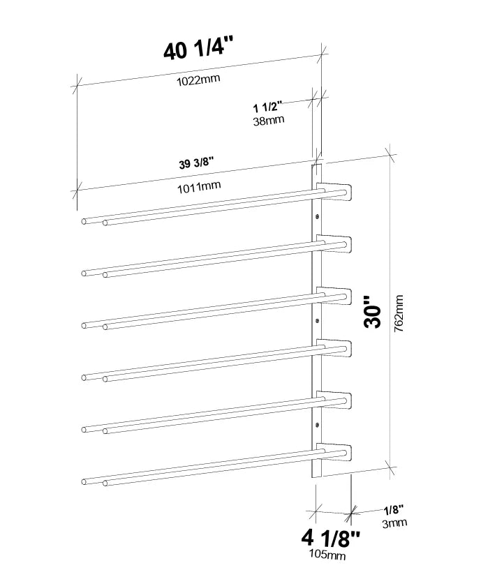 The Wine Wall is a modular wine rack system that blends contemporary label-forward design with smart functionality perfect for home and commercial wall-mounted storage projects, small to large. This stylish system uses steel Wine Rods to hold split*, standard, Champagne, Pinot Noir, or magnum bottles — all in the same row. Our proprietary design allows for sturdy installation — using commercial-strength steel supports — into both drywall and wood-backed surfaces. Perfect for your everyday drinkers or your valuable Bordeaux vintages.