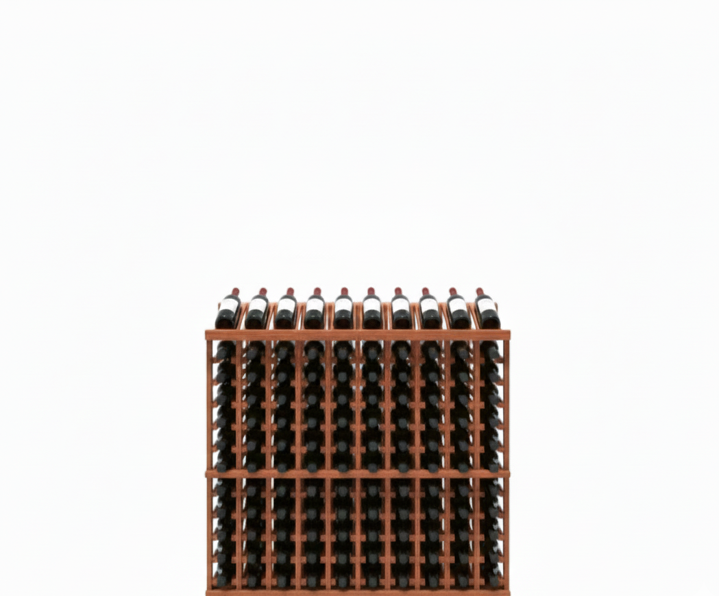 Retail wine merchandiser with individual wine bottle slots that works up against a wall. Display 10 wine bottles with storage for 11 bottles underneath. This wooden wall wine display can hold up to 120 wine bottles total and is available in Pine, Oak, and Mahogany.