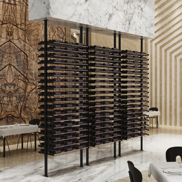 Elevate your wine storage with the Evolution Wine Wall posts, which let you mount Evolution Racks in the middle of the floor. This innovative system transforms the label-forward Wine Wall into striking room dividers and glass displays, adding industrial elegance to both commercial and residential spaces.