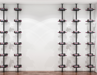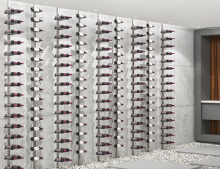 The Vino Series Floor-to-Ceiling Post Kits create the illusion of floating wine and offer customizable options, including label or cork-forward orientations and various bottle capacities. Choose between designing your own setup with individual components or opting for a complete kit that includes posts, mounting plates, and pins or rails. These minimalist, artistic kits allow for unique bottle displays, accommodating everything from a single bottle to large collections.