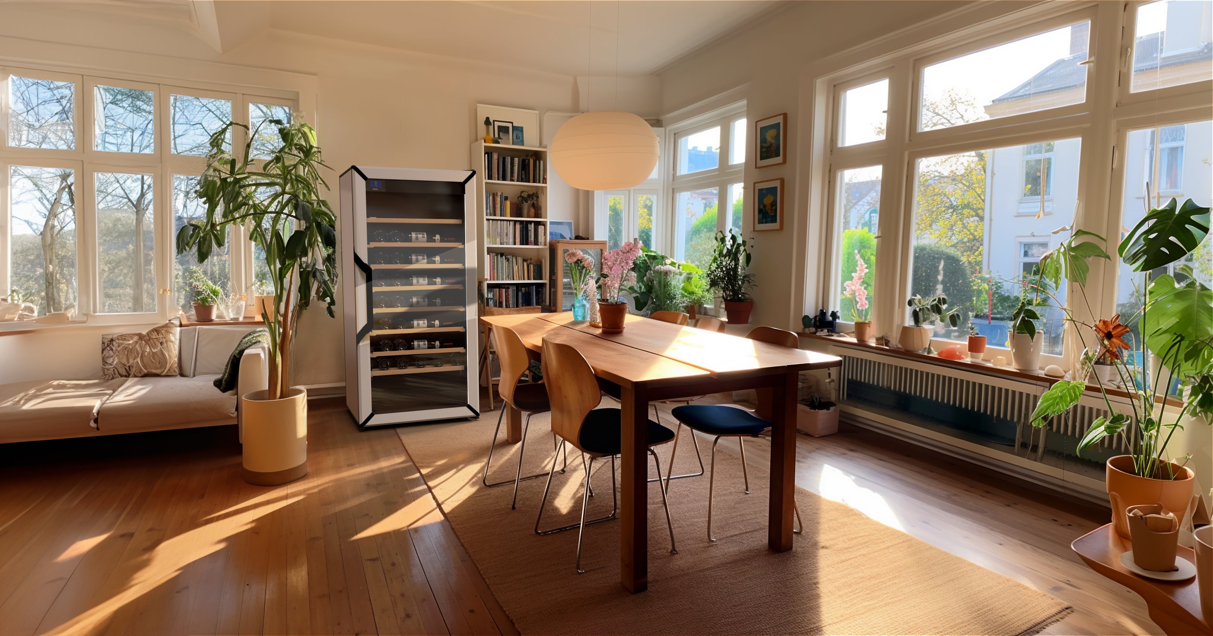 Featuring three independently controlled temperature zones (red, whites and bubbles, longer term aging), UV filtered glass, whisper quiet operation, and bright side lighting. For every wine style, Goguette ensures every bottle is preserved and ready for your next dinner party
