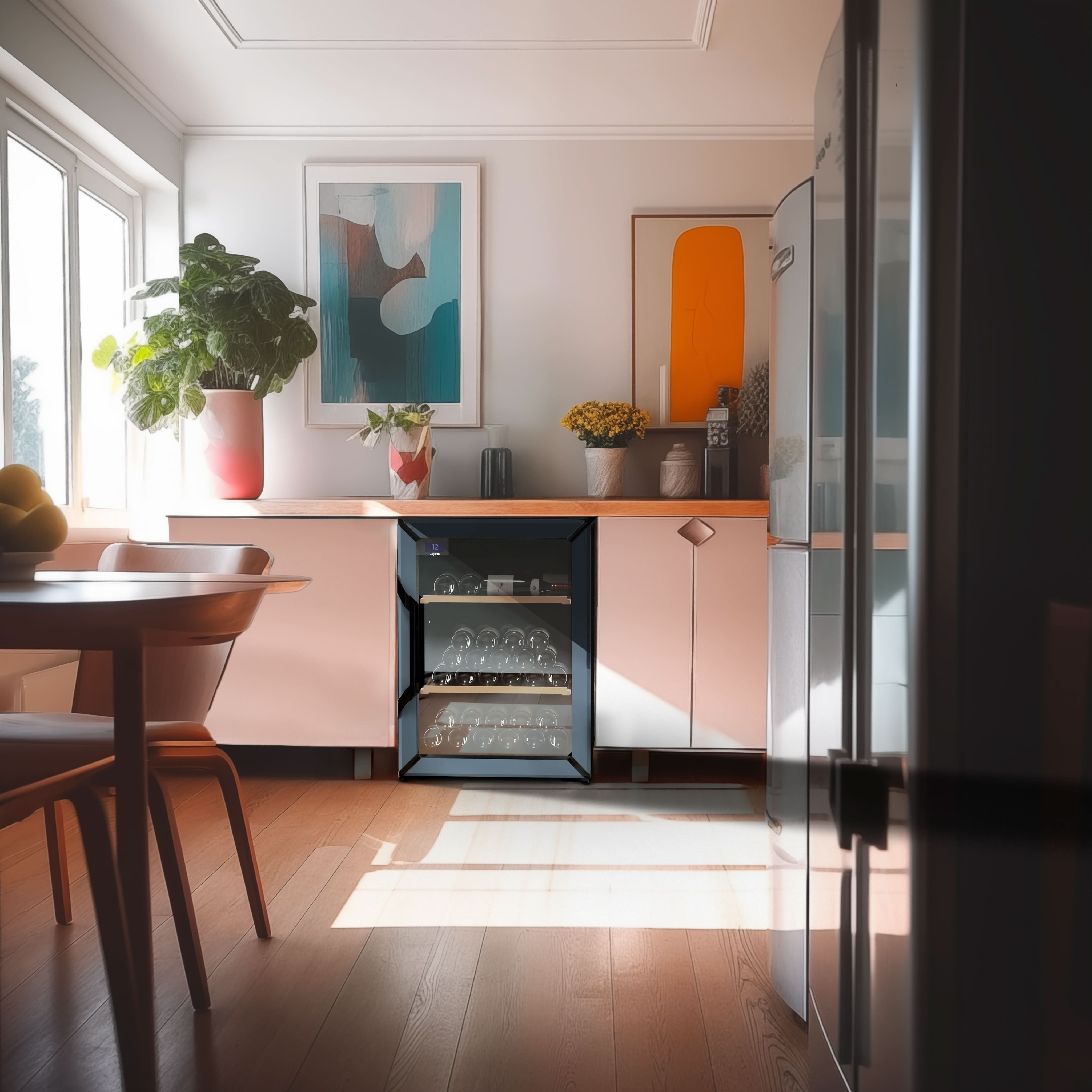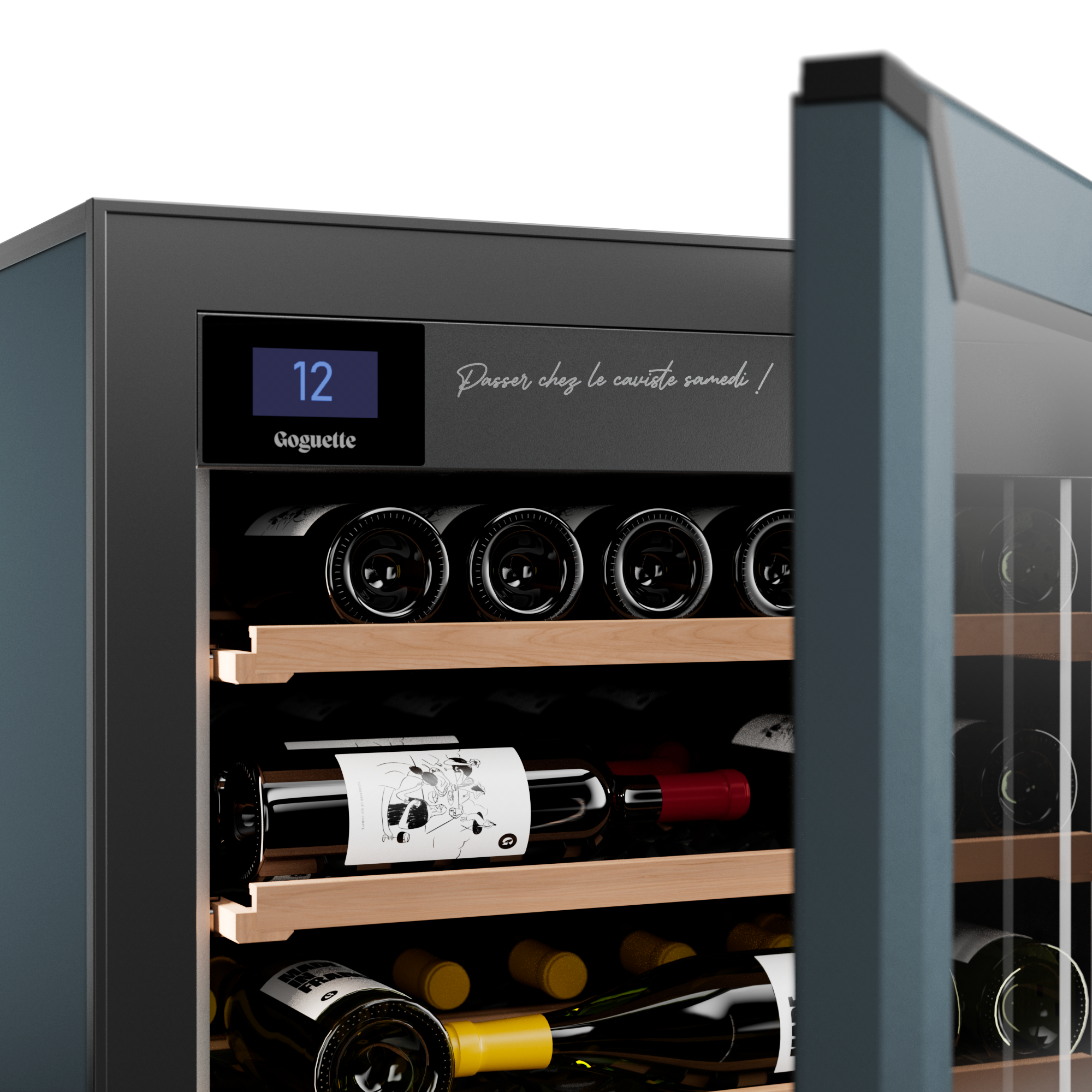 Make a bold statement with the Goguette Small Wine Fridge in Slate Blue— a striking, architectural finish that adds depth and sophistication to any modern space. With its compact silhouette and dark matte exterior, it anchors minimalist and industrial-inspired interiors without overwhelming the room. This compact model comfortably holds 50+ standard 750ml bottles, and up to 98 depending on your shelf configuration.