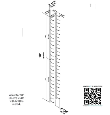 WS82: 96”x 13”x 8.5”, holds 48 bottles