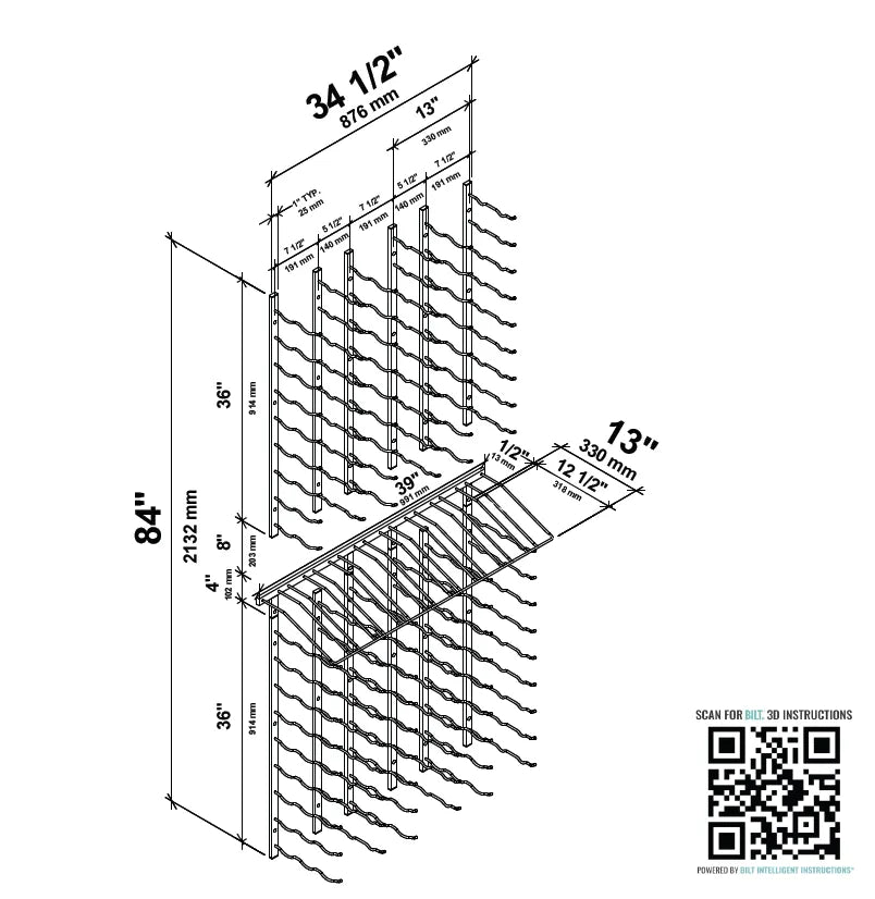 The W Series Presentation Row Wine Display Kit combines two of our most popular sized W Series metal wine racks with a presentation row, creating a three-column wide wall of wine.