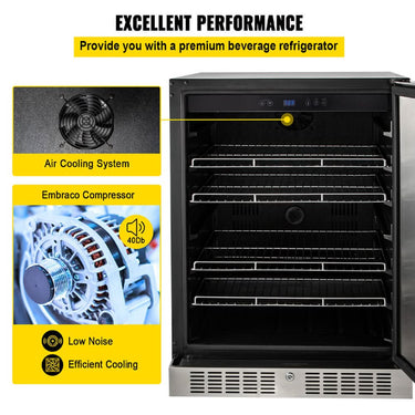 Crafted from premium outdoor-rated 304 stainless steel and boasting IPX4 weather resistance, this undercounter refrigerator stands up to the harshest conditions. Rain or shine, your beverages remain perfectly chilled, thanks to its superior insulation materials that handle extreme temperature fluctuations. Say goodbye to rust and corrosion and hello to long-lasting durability.