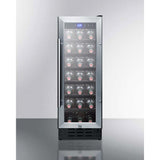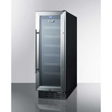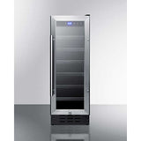 At just 12in. wide, SUMMIT SWC1224B features a front-breathing design for built-in installation under counters, but also has a fully finished cabinet for alternate freestanding use. The interior can store up to 21 standard Bordeaux style or wider Burgundy style bottles. The reversible glass door features stainless steel trim and a professional handle, with a factory installed lock to prevent unsupervised access.