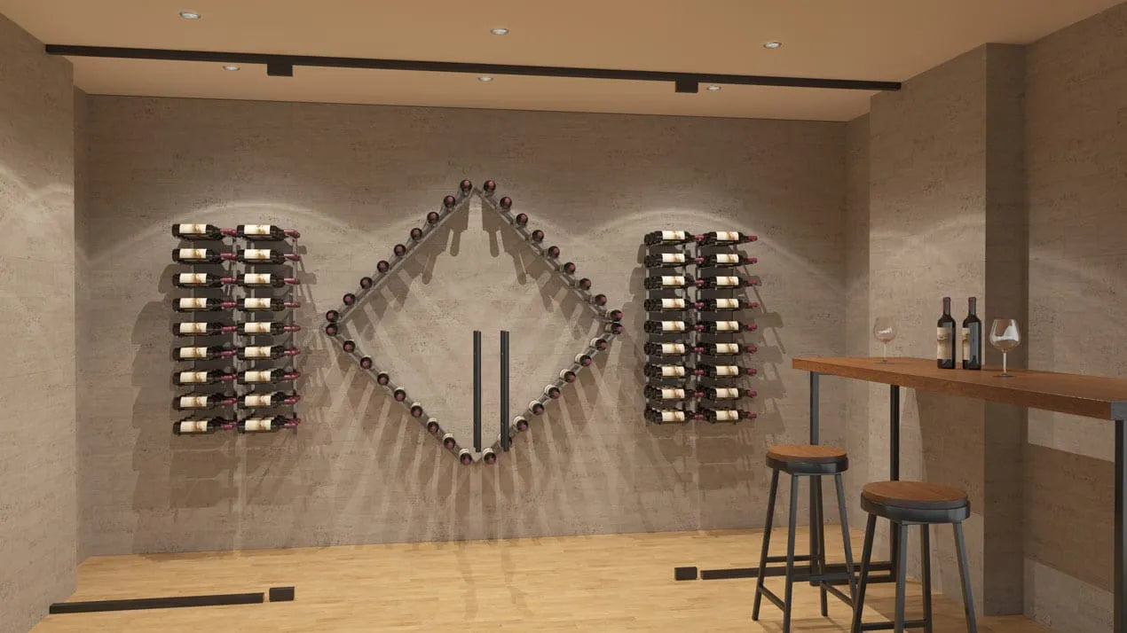Vino Rails Flex 45 Wall Mounted Metal Wine Rack System
