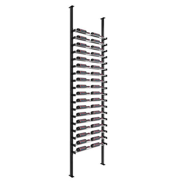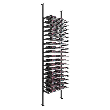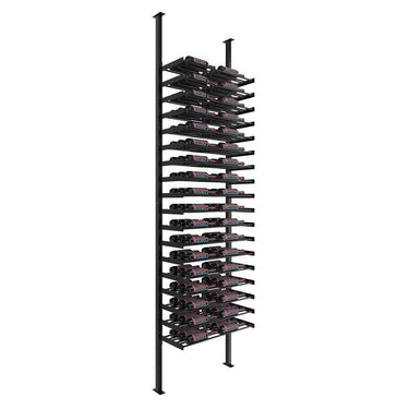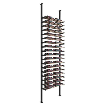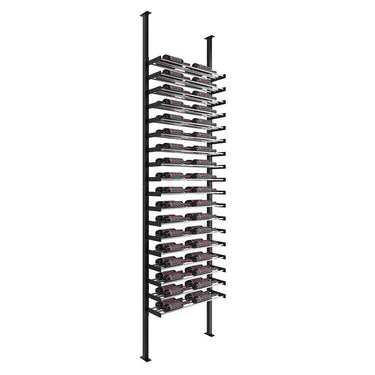 This floating wine rack kit comes with everything you need to assemble a floor-to-ceiling column wine rack using our ground-breaking, label-forward Evolution Wine Wall system. Off-the-wall mounting provides a versatile design enhancement to build room dividers, install wine racks against glass, and help install racking in front of high-end tile or other materials that make wall mounting difficult.