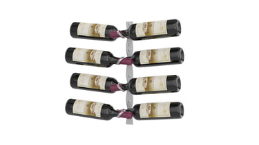 The Helix Dual 20 is an innovative two-bottle depth wine rack kit that holds (8) standard or Champagne bottles on a wall or a Post — jetting off in dual directions as if wings flying through the air. This wine rack looks almost as good without the bottles. This two Wine Rack kit maintains bottle depth pattern when stacking up a wall.