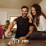 If your favorite cocktail is actually just shots, you’re in luck! Whether you’re shooting or sipping, show off your “Viva Tequila!” spirit with the Cantinero Shot Glass Set, a handsome dark acacia serving tray specifically carved to hold six heavy-bottom shot glasses, a ceramic dish for lime slices, and a frosted-glass salt shaker with a chromed steel lid. This tequila shot glasses set with cocktail serving tray is the coolest way we’ve ever seen to serve six tequila shots (or any of your other favorite liqueur, cocktails or shots). Your friends will most likely whip out their phones to take shots of this shot glass set....before hitting the tequila themselves! Look no further for cocktail gift ideas - this tequila gift is perfect for women and men who love to entertain at home.