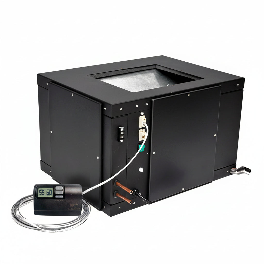 Electric Heat - Integral electric heater coil and and controls. Heater turns on to protect wine cellar from low temperature conditions. Ideal for areas where ambient temperature falls below 50 degrees F.