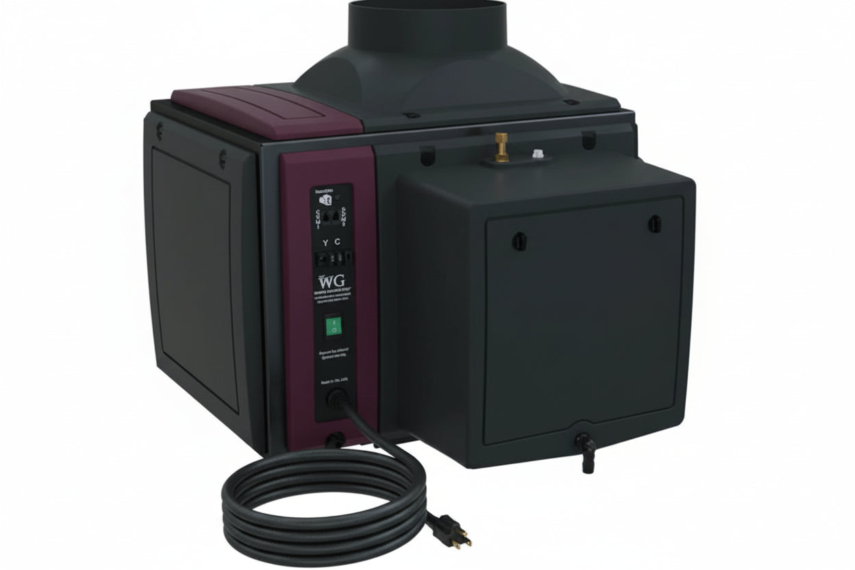 Humidification - Drip pad type humidifier with integral evaporator fan, water valves and controls. Powered by the Wine Guardian Unit.