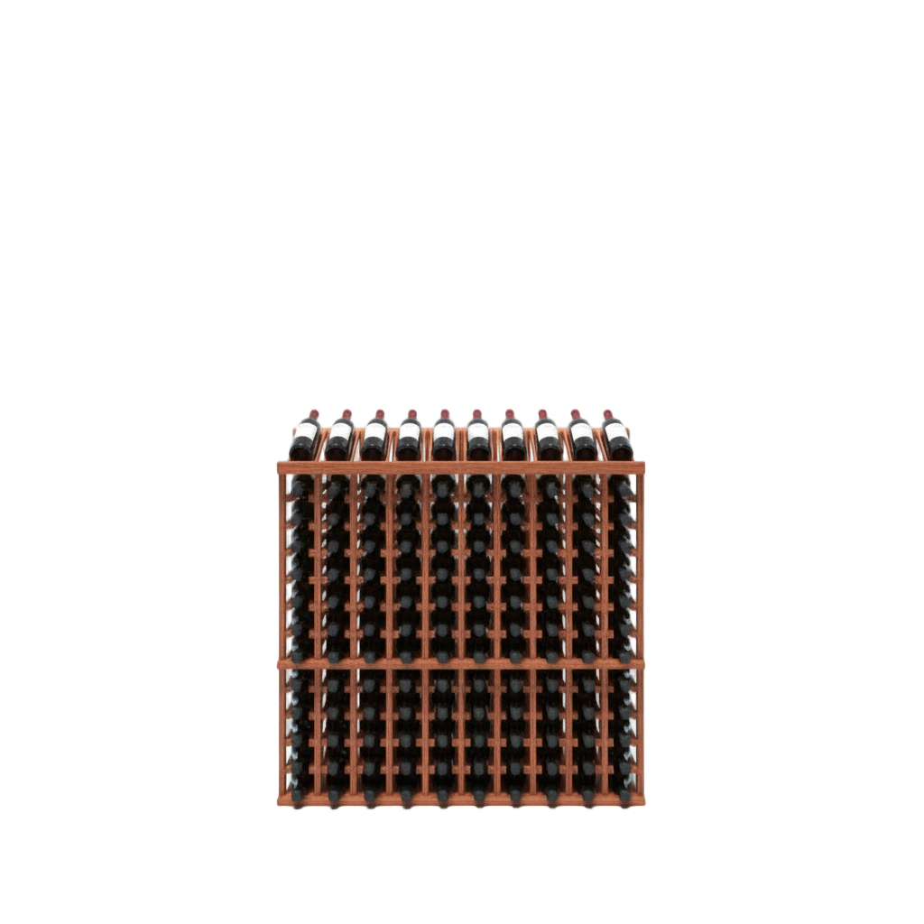 Retail wine merchandiser with individual wine bottle slots that works up against a wall. Display 10 wine bottles with storage for 11 bottles underneath. This wooden wall wine display can hold up to 120 wine bottles total and is available in Pine, Oak, and Mahogany.
