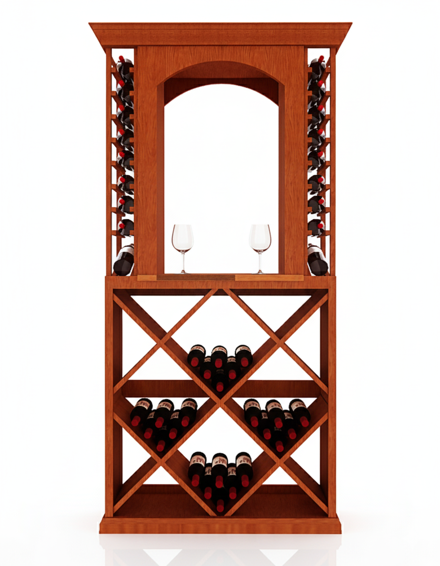 Elevate your home wine cellar with our Foot Wine Cellar, holding up to 128 (750 ml) bottles. Part of the RediCellar collection, this luxury wine storage solution offers elegance and functionality, perfect for growing wine collections. Features individual bottle storage with a display row to showcase labels, a tasting table with a curved arch and versatile diamond bins for various wine and liquor sizes, perfect for home bars. Customize the finish and design to seamlessly fit your space and showcase your bottles in style.