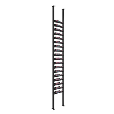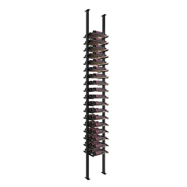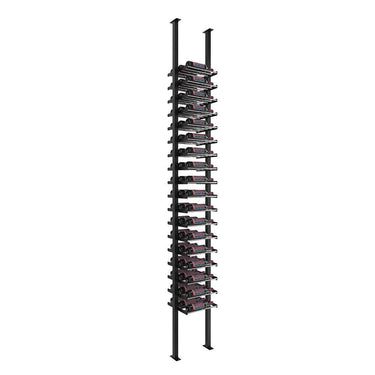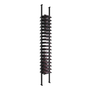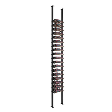 This floating wine rack kit comes with everything you need to assemble a floor-to-ceiling 1 column wine rack using our ground-breaking, label-forward Evolution system. Off-the-wall mounting provides a versatile design enhancement to build room dividers, install wine racks against glass, and help install racking in front of high-end tile or other materials that make wall mounting difficult.