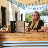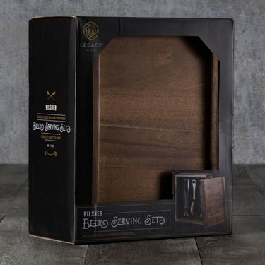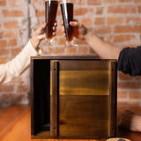 The handsome acacia wood and dovetail joinery of the Pilsner Craft Beer Set with 2 Beer Glasses can stand alone on your bartop as an objet d'art - but under the sliding, removable panel is the real treat for beer lovers: two tall 12 oz fluted beer glasses, two real cork beverage coasters, and a deluxe bottle opener. This beer glass set brings back the ceremony of serving drinks and is a worthy craft beer gift for the discerning beer lover in your life. At home or on the go, give your favorite craft beers the elevated treatment they deserve with this deluxe beer drinker gift set.