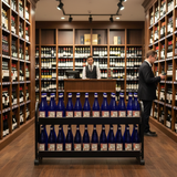 This low profile wine display rack supplies ample retail wine racking and fits nicely by deli counters, cheese counters, meat case islands, and coffin case freezers in supermarkets or just about anywhere. This POS rack is on casters for easy cross merchandising and cleaning.