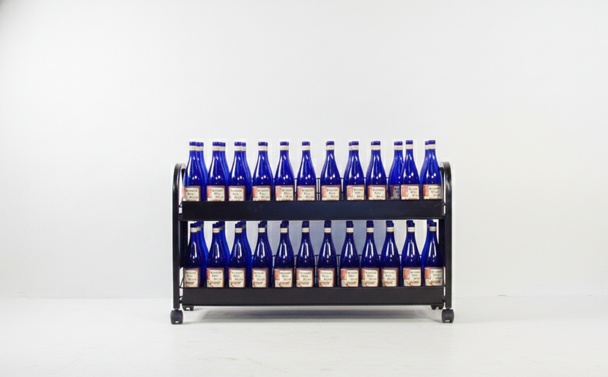 6 case two tier wine rack holds 72 - 750 ml bottle upright.