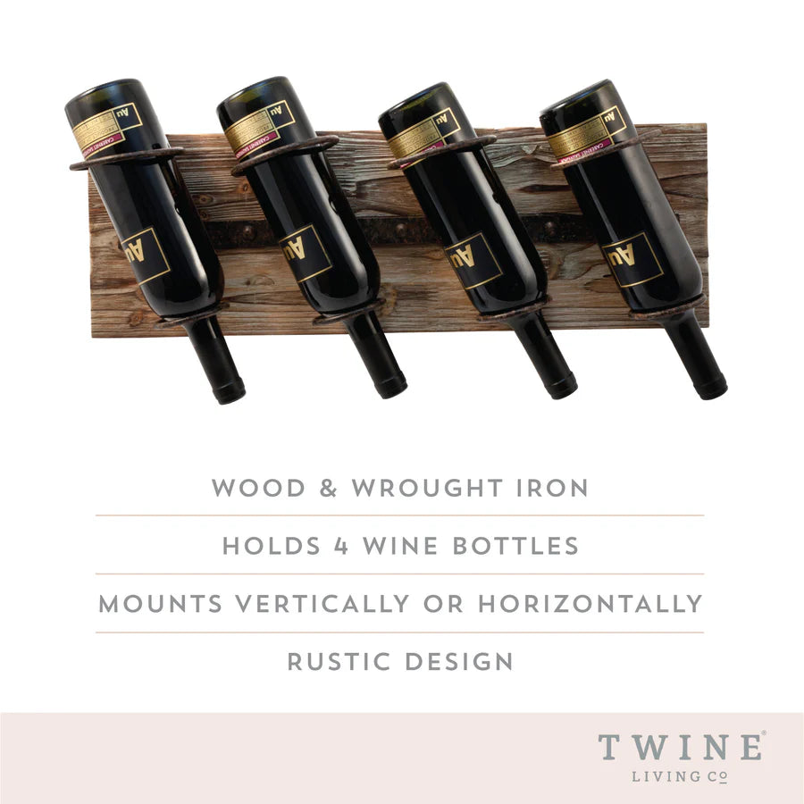 This beautiful rustic wine rack will adorn your walls with the elegance of simplicity. Crafted from wood and metal, this gorgeous rustic wine rack mounts vertically or horizontally to display four of your favorite wine bottles. The wine rack holds up to 13lbs. and is designed to fit any wall space as it can be mounted any way you see fit.